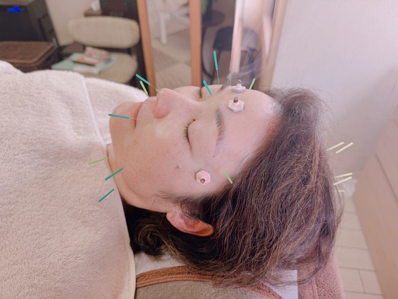 お顔に鍼をする前に全身の調子を整えます